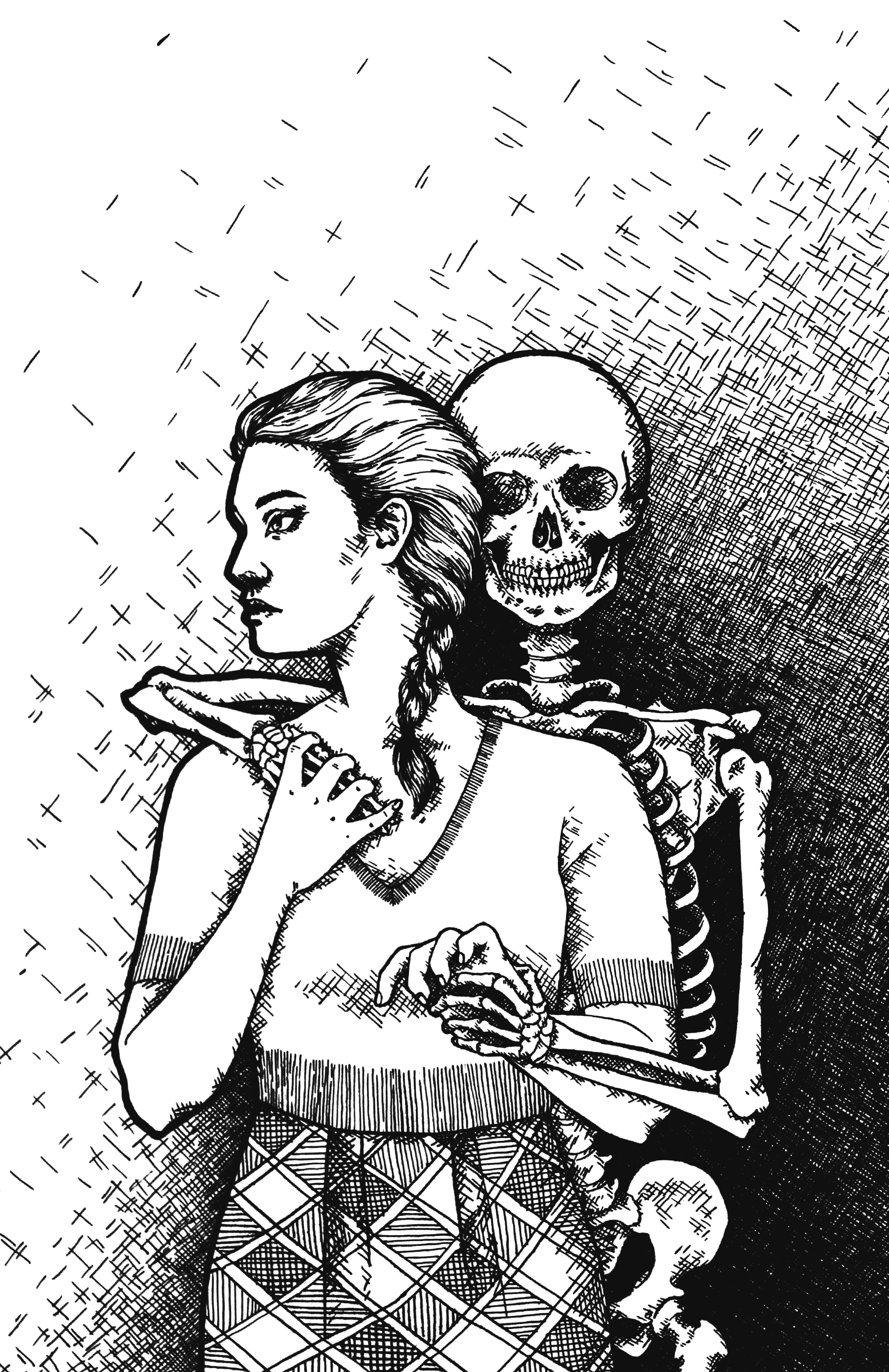 This ink drawing was created as cover art for Tales from the Valley of Death by Ross G Menzies and Rachel E Menzies, published by Australian Academic Press. Cover layout design by Luke Harris, Working Type Studio.